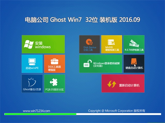 电脑公司GHOST WIN7X64位装机版V2016.09支持IDE、SATA光驱启动恢复安装,支持WINDOWS下安装,支持PE下安装。
