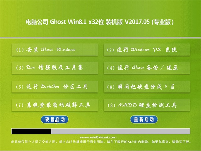 电脑公司Win8.1x32位系统仅用于进行演示基于万能GHOST的快速部署技术,供装机维护技术人员参考,我们不承担任何技术及版权问题,且不对任何资源负法律责任。所有资源请在下载后24小时内删除。如果您觉得满意,请购买正版 !!!
