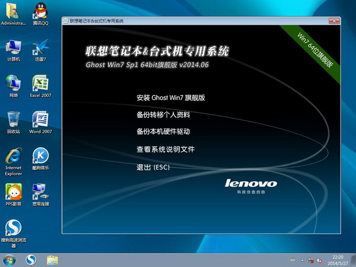 联想笔记本&台式机专用系统 Ghost Win7 Sp1 64位旗舰版 v2014.06