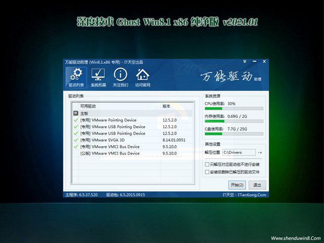 深度技术Ghost Win8.1x86 经典纯净版2021.01月(绝对激活)