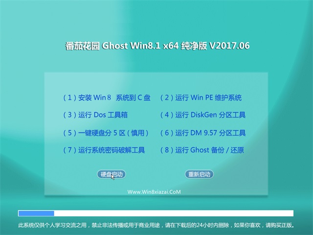 1、番茄花园Win8.1x64位纯净版系统完全是个人兴趣爱好,禁止任何机构及个人将此系统作为商业用途!