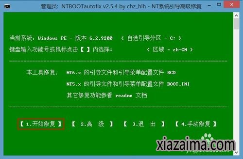 12.这时大家对引导分区C:进行修复,打开“【1.开始修复】”,如下图所示: