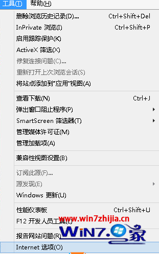 1、打开win10系统的浏览器,然后按一下“ALT”键呼出菜单栏,然后打开“工具”,然后打开“internet 选项”;