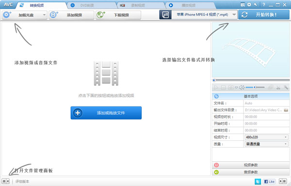 Any Video Converter(万能视频转换工具)是一款专业的影片转换软件,它可以在保证最佳品质下,采用最快速的转换运算,几乎支持市面上流通的所有影片格式,例如:DivX, XviD, MOV, rm, rmvb, MPEG, VOB, DVD, WMV。支持把AVI转换成iPod/PSP、其它可携式影片设备、MP4播放器或是电话的MPEG-4影片格式。同时支持用户自定义输出格式和大小比例!
