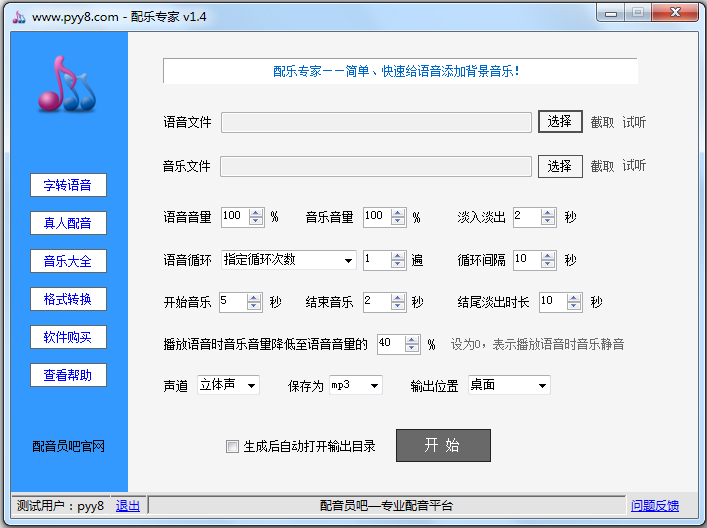 配乐专家是一款为广告、彩铃等语音添加背景音乐的软件,同时还具有文字转语音功能。