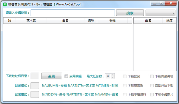 暗巷音乐间谍是一款非常强大的音乐下载软件,可以帮您下载需要付费的无损音乐,支持多个音乐平台,而且还支持歌曲试听,音乐单曲、专辑、热门歌曲下载等,资源非常丰富,需要的朋友快下载吧!