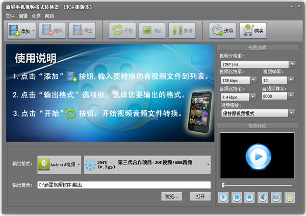 新星手机视频格式转换器是一款能够帮助用户快速将视频转换成手机设备所支持的格式,它具有转换快速、操作简单等特点,该软件能够支持目前所有流行的各种音频和视频文件格式,并能把.....