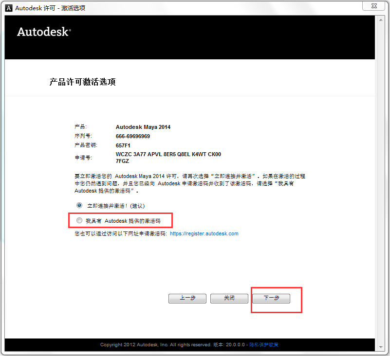 10、最后复制Activation中的激活码至“输入激活码”栏中,并点击下一步完成激活。