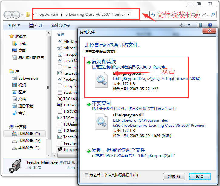 8.选择复制和替换文件。这样就破解成功了。当然,登录软件还需要有用户名和密码