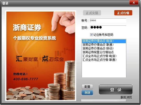 浙商证券股票期权投资交易系统是一款非常专业的证券交易软件。本软件集个股期权行情资讯、证券行情行情分析及证券交易于一体,具有股票期权行情、正股管理、期权策略交易、期权定价.....