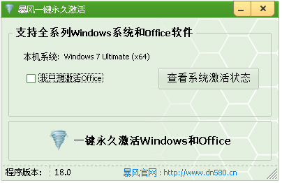 2.暴风激活工具一键永久激活win7系统,win8系统,win8.1系统,win10系统和各系列的Office软件的激活问题,轻松 一键就可以实现永久完美离线激活,完全超越其他任何激活工具。