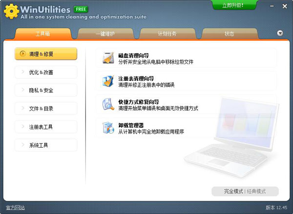 WinUtilities(Windows优化工具)是一套Windows优化工具,提供的功能包括磁盘清理、注册表清理/备份、自启动程序管理、内存优化、查找重复文件、快捷方式修复、进程管理、卸载管理.....