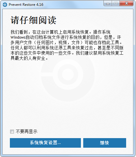 Prevent Restore为彻底删除这些文件而设计,用户可以选择一个想要删除的文件,选删除格式,它会立刻执行。有一些使用安全算法的删除方式可以使用,这些被删除的文件不能被恢复。.....