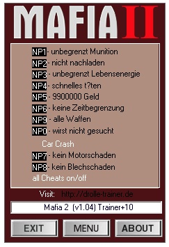 黑手党2修改器 是一款同名下的作弊工具。黑手党2是一款动作冒险类游戏,游戏将带领玩家进入如同好莱坞电影般的游戏世界,在活生生般的城市中冒险。 按键说明 [小键盘 1] 无限弹药.....