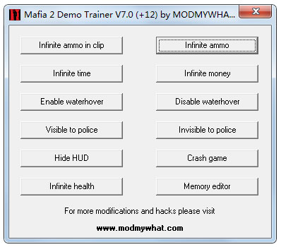 黑手党2全版本修改器是该款同名动作角色扮演类游戏《黑手党2》的辅助工具。这款黑手党2全版本修改器可进行无限弹药、无限时间、无限金钱、无敌等12项操作设置辅助,让你轻松的进行.....