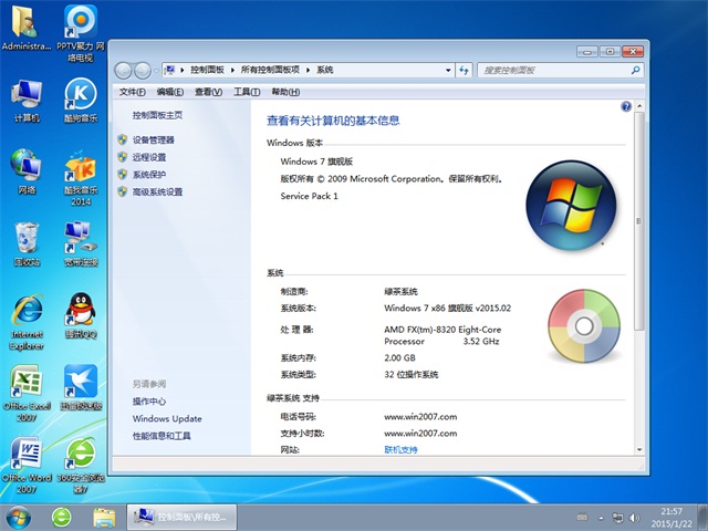 绿茶系统 Ghost Win7 SP1 x86 旗舰装机版 2015.02