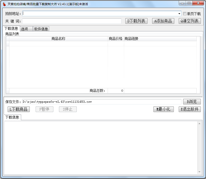 天音拍拍店铺商品批量下载复制大师 拥有超强数据采集功能,新商品上架不再繁杂。让您有更多的时间打理生意,宣传自己的商品,工作变得简简单单。 可以采集任意拍拍店的商品,包括描.....